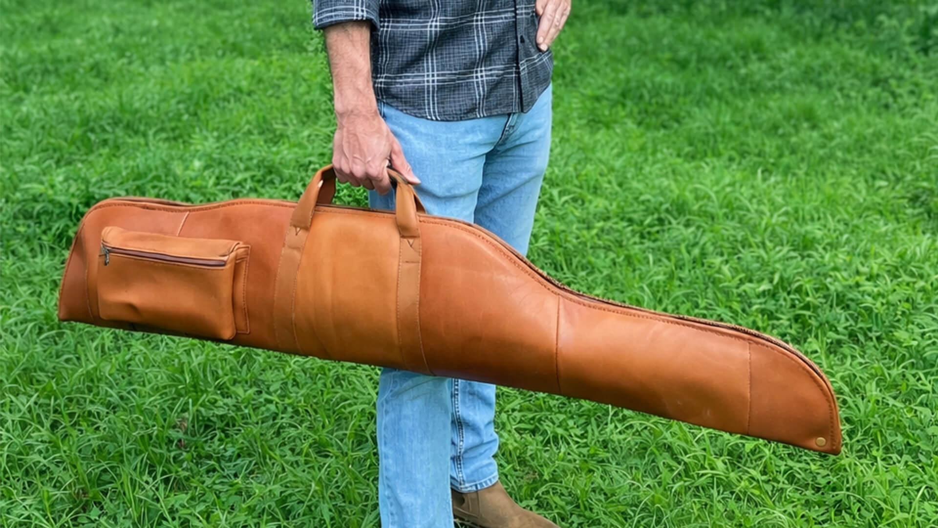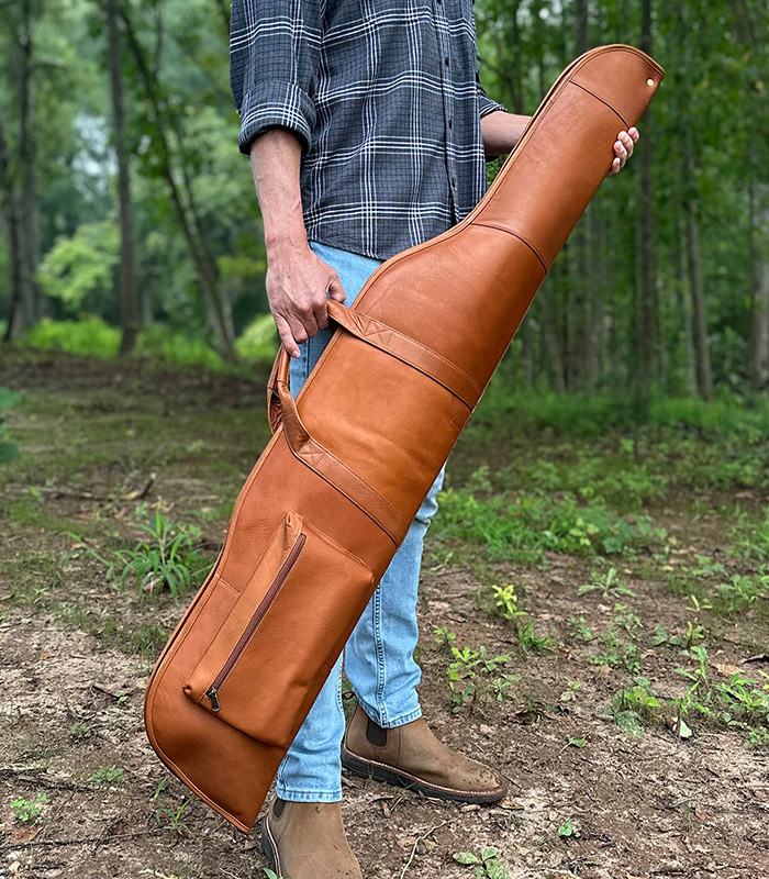 Crafted from Top Grain Columbian Leather, the Amparo Gun cleaning mat roll features saddle tan leather on the outside and beige fleece on the inside. With a leather cord wrap closure, it rolls up easily for convenient carry of tools and cleaning equipment. The Amparo uses soft fleece to protect against scratches and stops small parts and screws from rolling away.