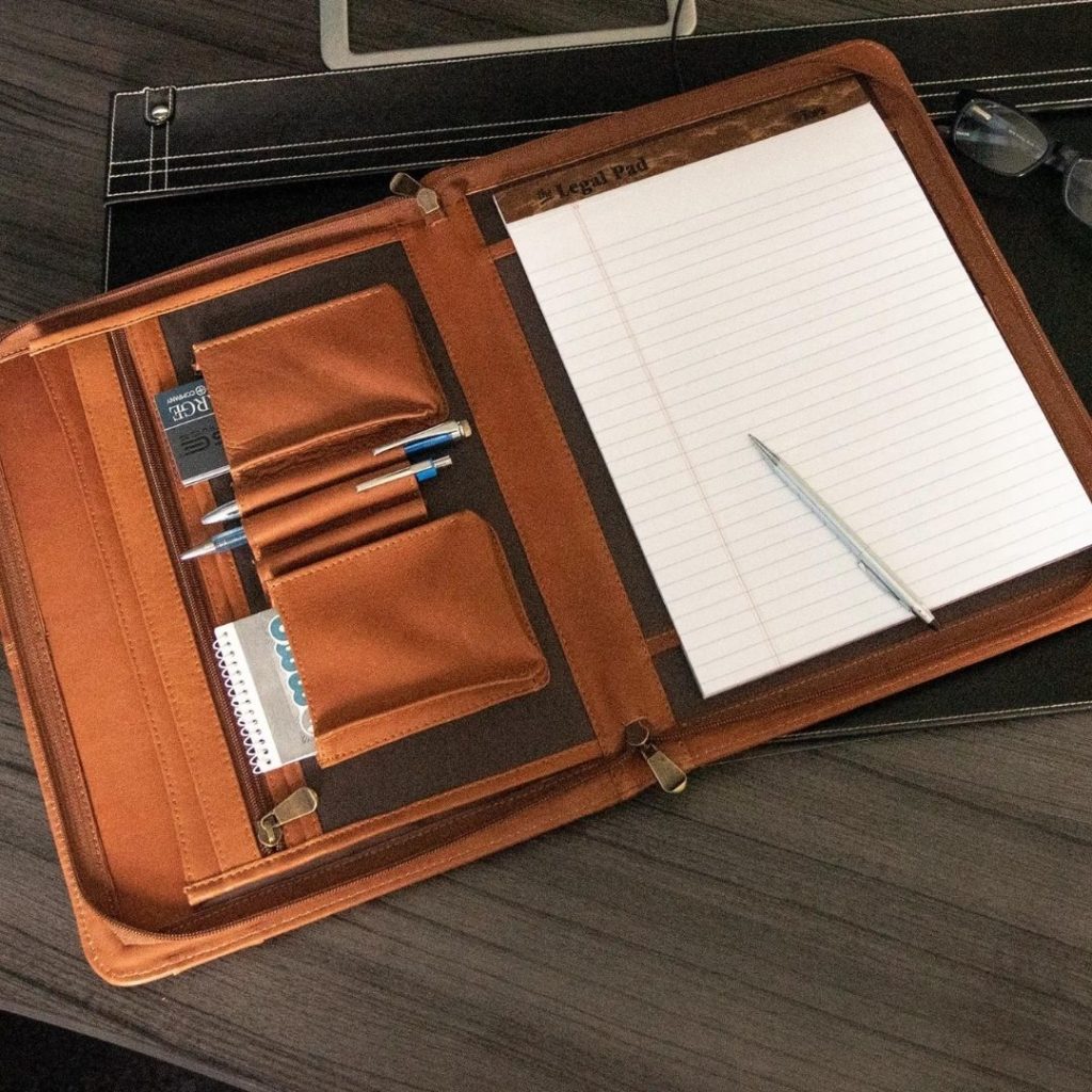 For recent graduates, staying organized is key. What better way to do it than with our leather portfolio? It’s zippered around the edges, ensuring that keeping everything together is a snap. With room for a cell phone, notepad, pens, and more, it’s a great choice that anyone will get plenty of use out of.
