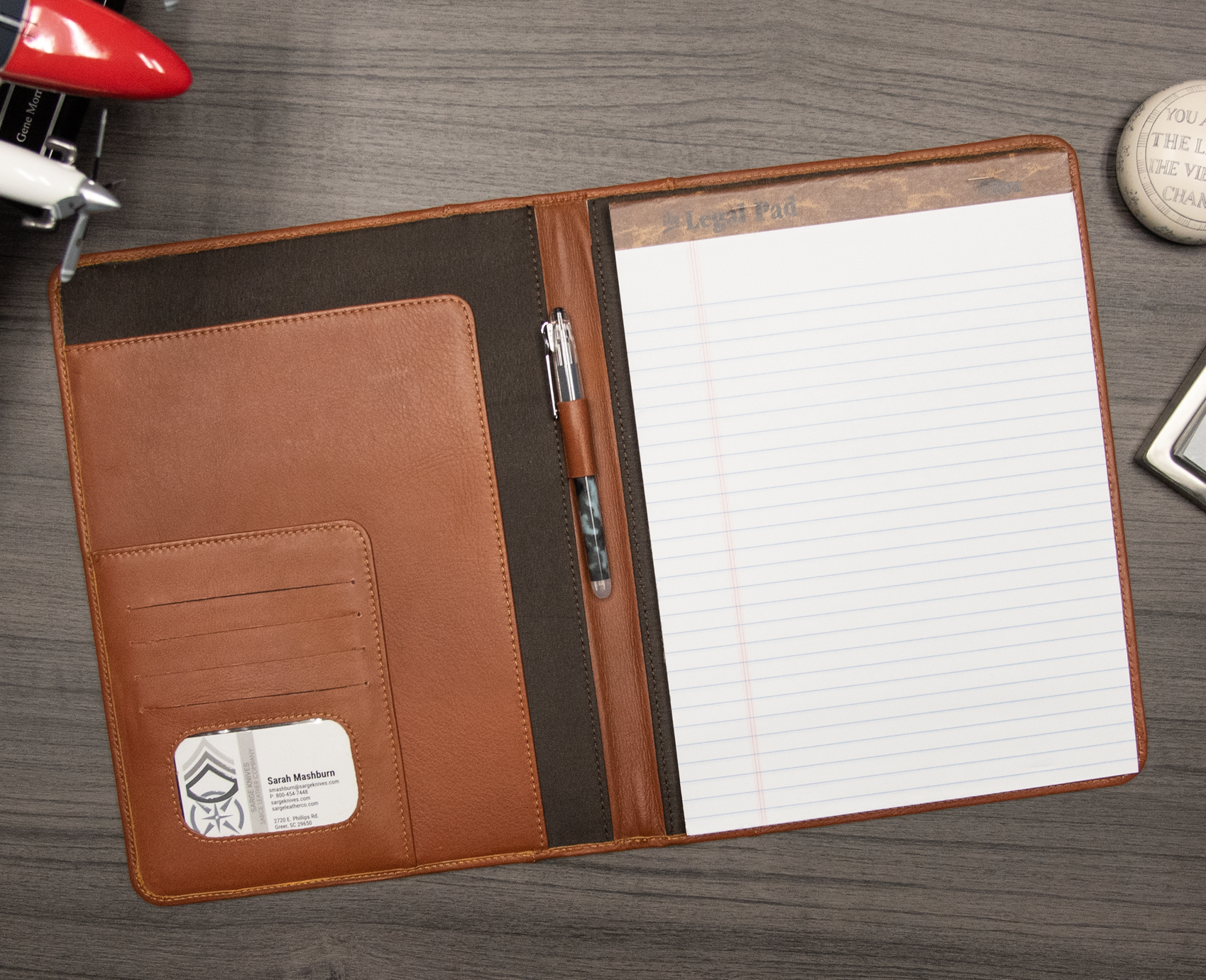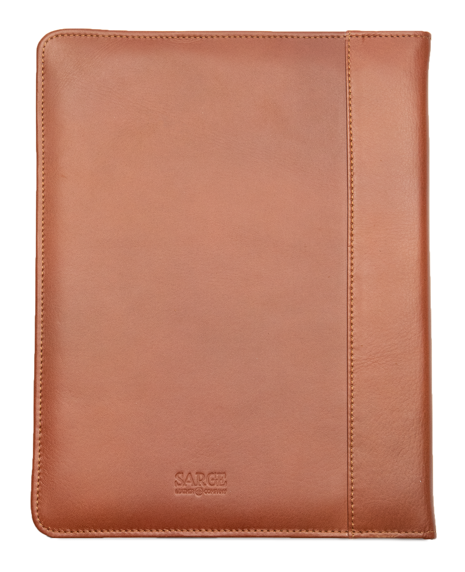 To keep your notes organized and your documents secure, this light and professionally styled portfolio is built Sarge strong. The Potro is crafted from solid pieces of Colombian top grain cowhide leather, and is lined with a Mocha Brown Interior Nylon. Large and small pockets on the right hand side will ensure all your notebooks, papers, pens, and business cards are held securely in place.