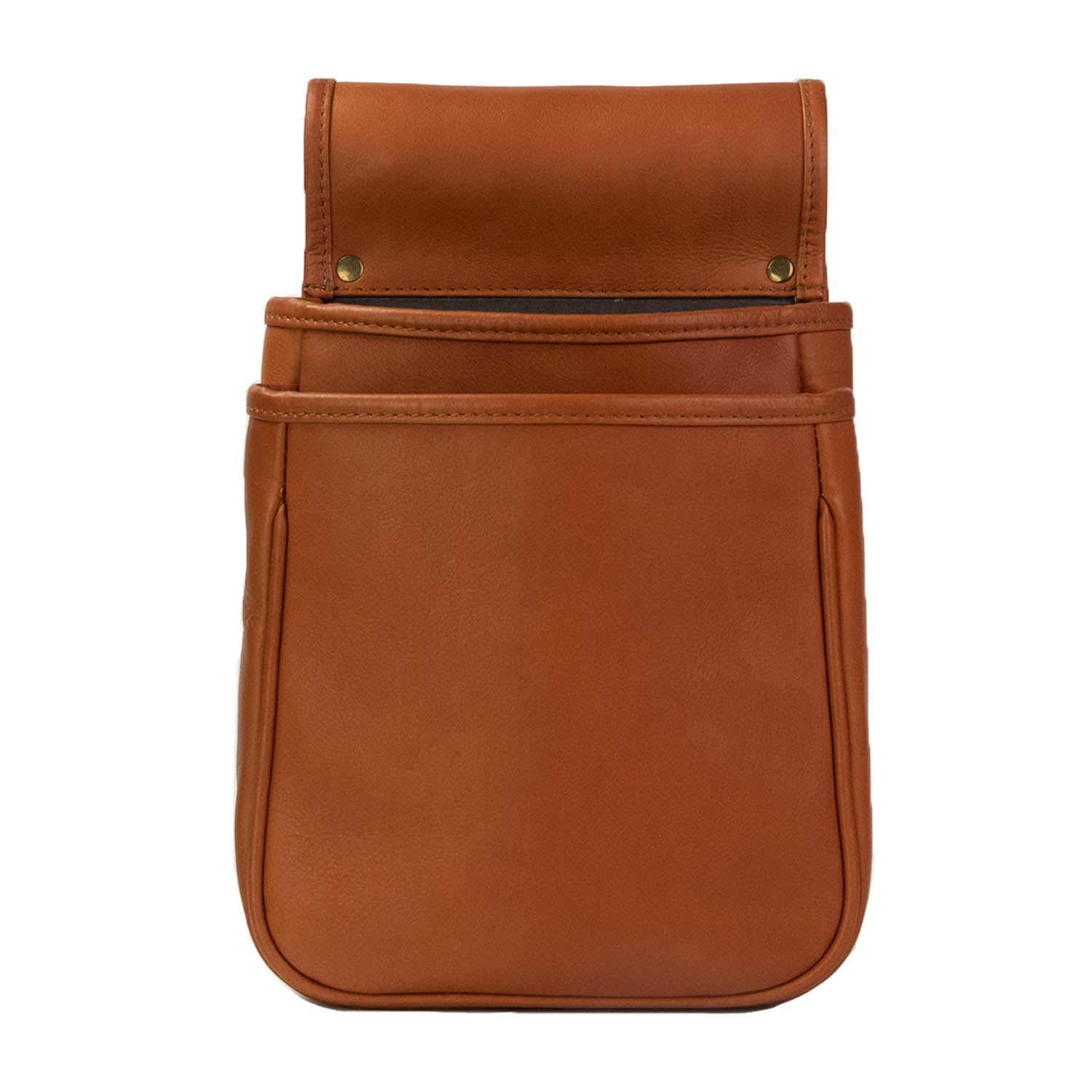 Crafted from Top Grain Columbian Leather, the Regal Deluxe Shotgun Shell Bag features two compartments with a Durable Mocha Brown Nylon Lining. The Regal features an open top which allows the shooter quick access to more ammunition. A slot in the back allows the pouch to be attached to a belt. The double compartment is handy to separate your empty shells from the live shells. This is great for a day of shooting at the range or to use while in the field.